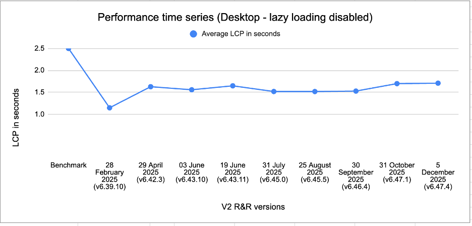 Following the recent deployment, we are observing the expected improvement in LCP. It also included a fix for a minor UI issue: the rating summary section would sometimes visually "shift" or "jump" as its data was loading. The section will now wait for all its data to be available before rendering, ensuring a more stable and consistent user experience.