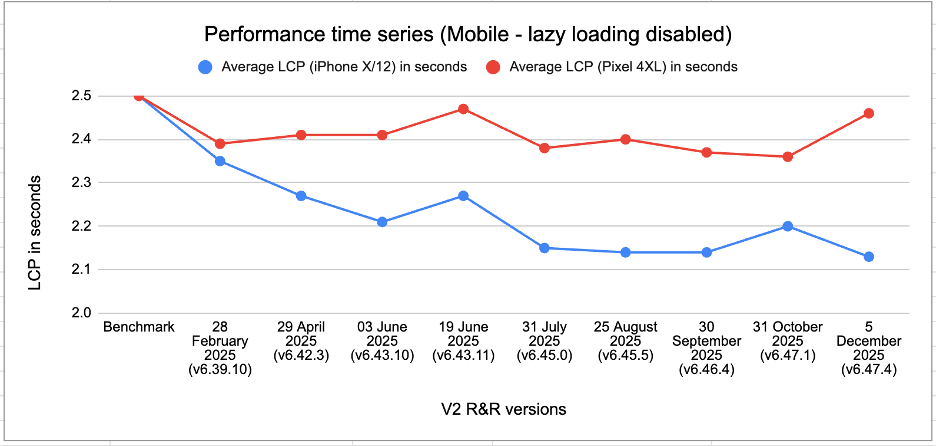 Following the recent infrastructure optimizations, we have observed a reduction in DNS resolution performance. However, not a significant change was recorded for overall page load performance as measured by our LCP (Largest Contentful Paint) Numbers.
